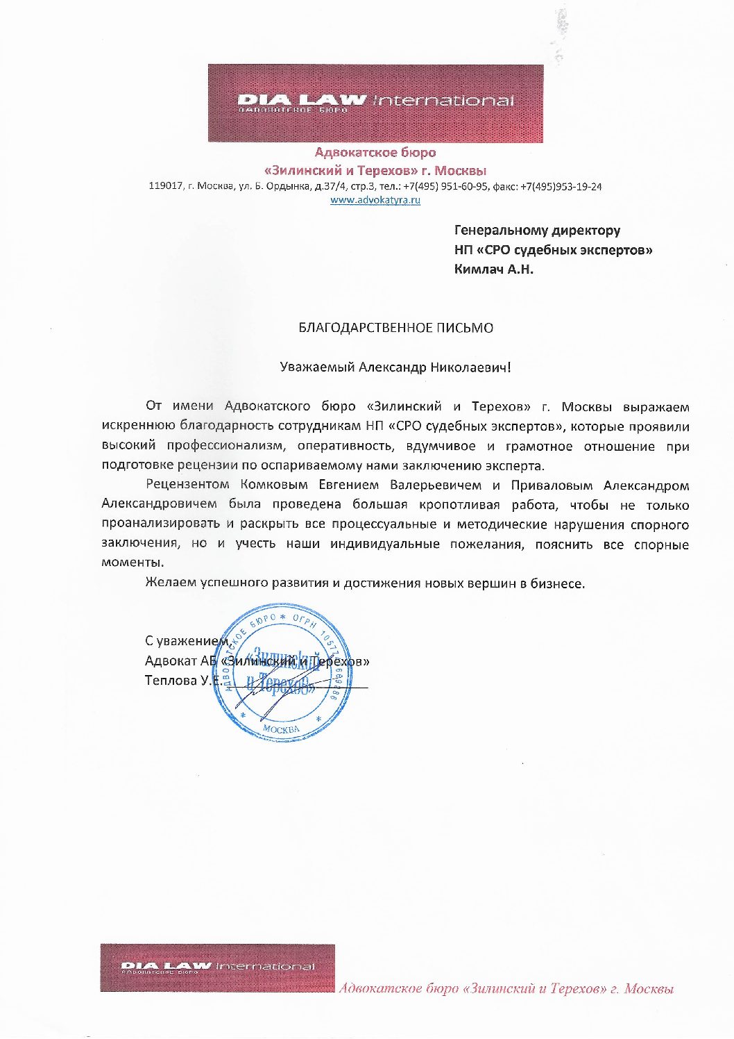 ГлавнаяРекомендательные письмаАдвокатское бюро «Зилинский и Терехов» г. Москвы