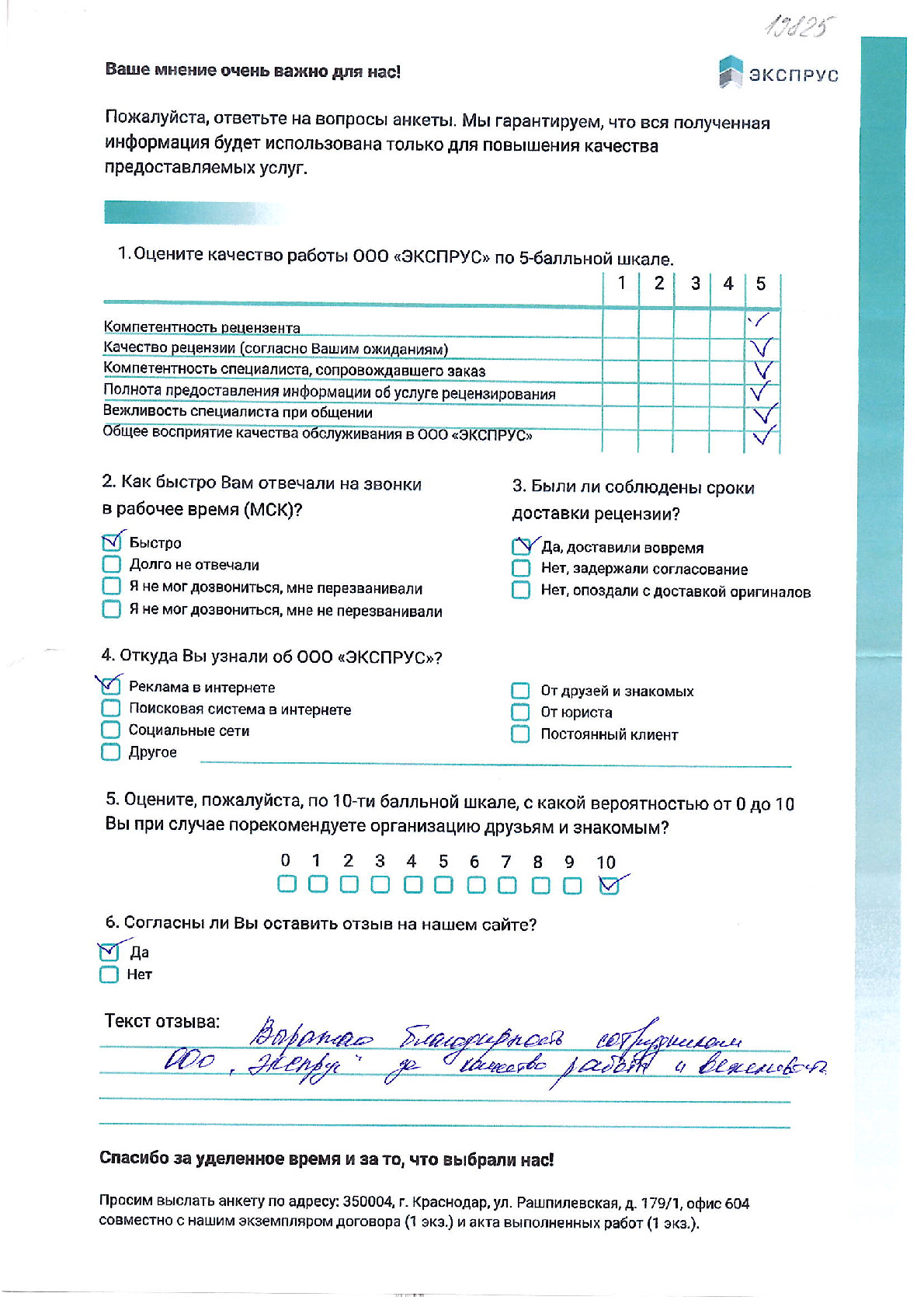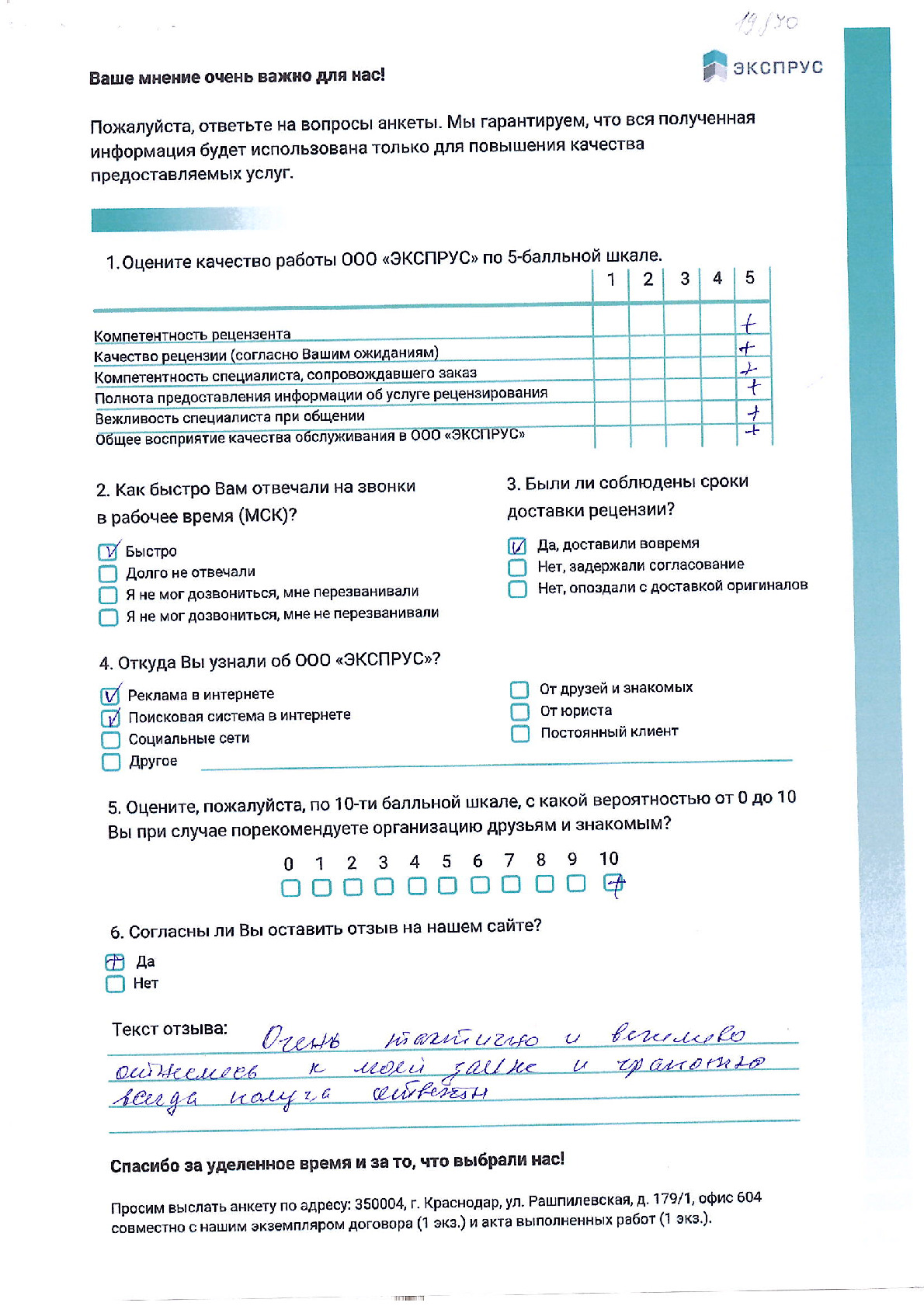 Это был второй заказ рецензии. Как и в прошлый раз рецензия выполнена быстро и качественно, с высоким качеством и обоснованностью выводов специалистов.